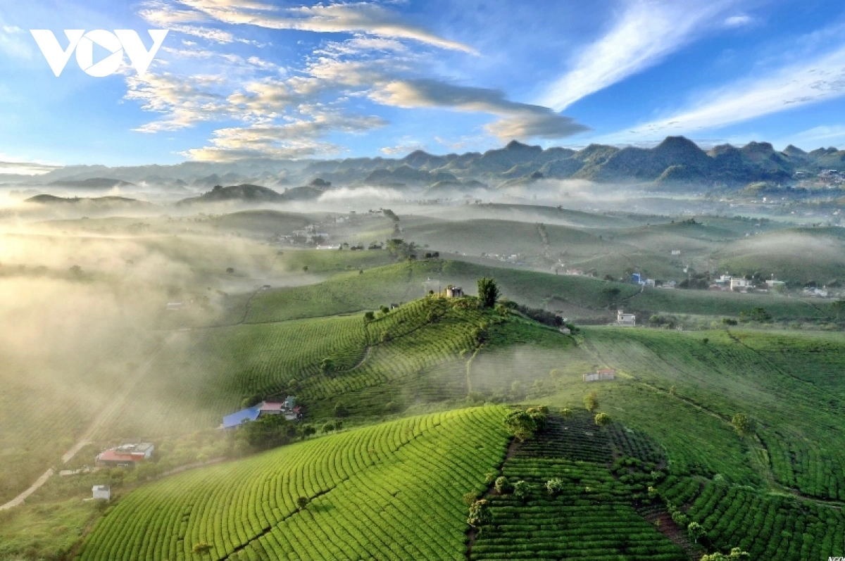 Khám phá vẻ đẹp hoang sơ của Pù Luông với những thửa ruộng bậc thang và văn hóa dân tộc Thái tại Bản Lác, cùng trải nghiệm không khí cao nguyên mát mẻ và đồi chè trái tim lãng mạn tại Mộc Châu.
